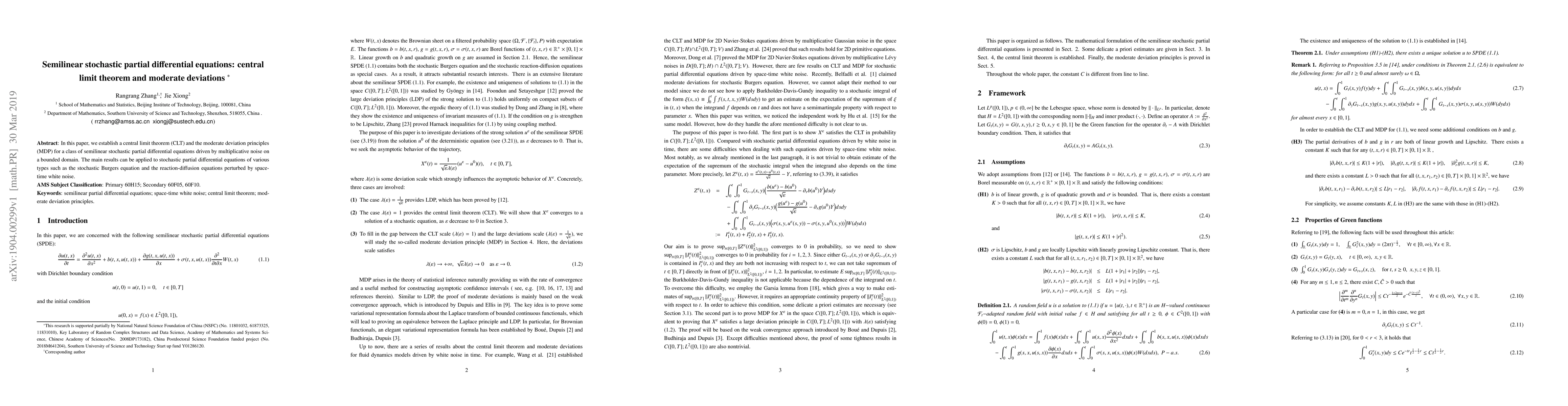 This paper establishes a central limit theorem and moderate deviation principles for semilinear stochastic partial differential equations driven by multiplicative noise, applicable to various types including stochastic Burgers and reaction-diffusion equations. The results provide probabilistic insights into the behavior of these stochastic systems.