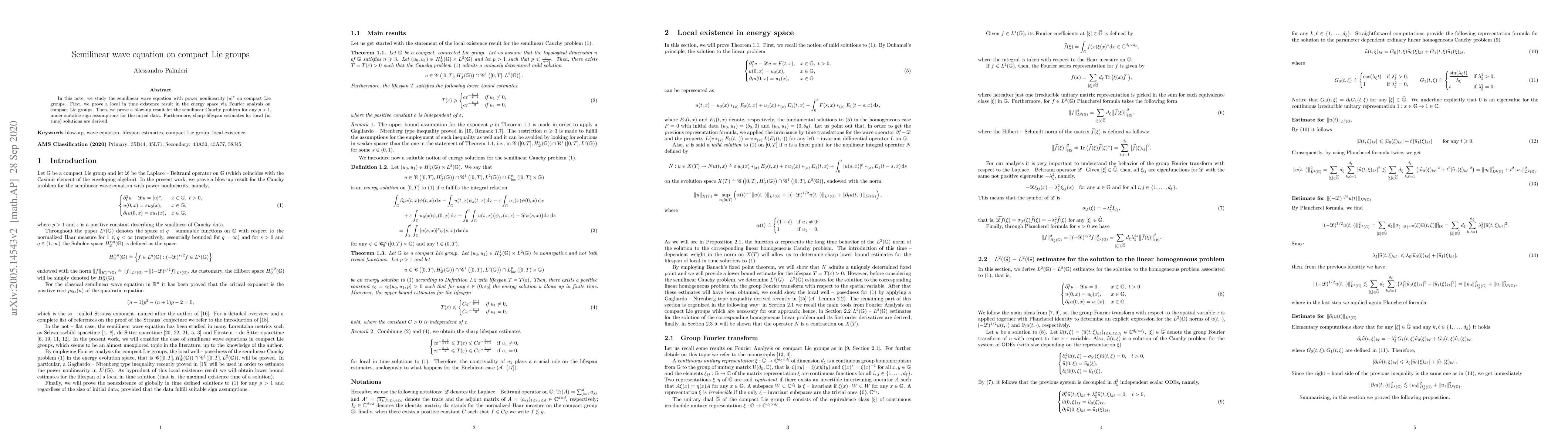 This paper investigates the semilinear wave equation with $|u|^p$ nonlinearity on compact Lie groups, establishing local existence via Fourier analysis and deriving blow-up results for $p>1$ under specific initial conditions, along with precise lifespan estimates for local solutions.