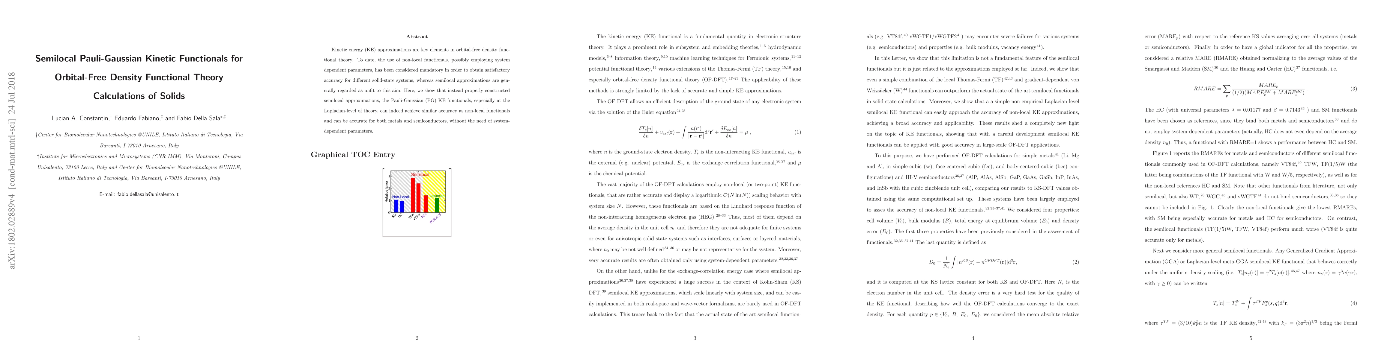 This paper demonstrates that semilocal Pauli-Gaussian kinetic functionals, particularly at the Laplacian level, can achieve comparable accuracy to non-local functionals in orbital-free density functional theory calculations for solids, without requiring system-dependent parameters. This challenges the conventional view that non-local functionals are necessary for accurate solid-state simulations.