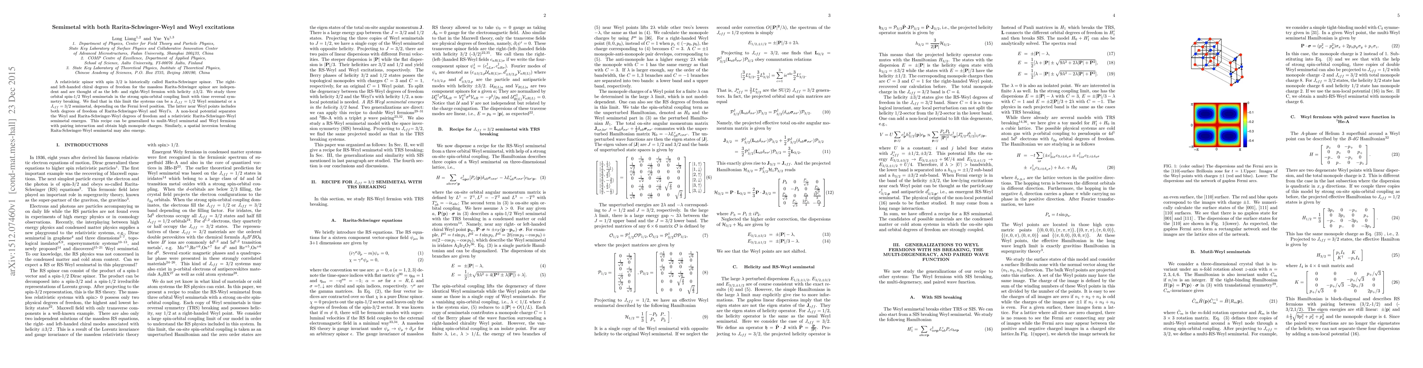 This paper explores relativistic spinors with spin 3/2 in spin-1/2 Weyl semimetals under strong spin-orbital coupling and symmetry breaking, finding they can exhibit both Rarita-Schwinger-Weyl and Weyl excitations, leading to a novel relativistic Rarita-Schwinger-Weyl semimetal. The potential for high monopole charges and inversion-breaking semimetals is also discussed.