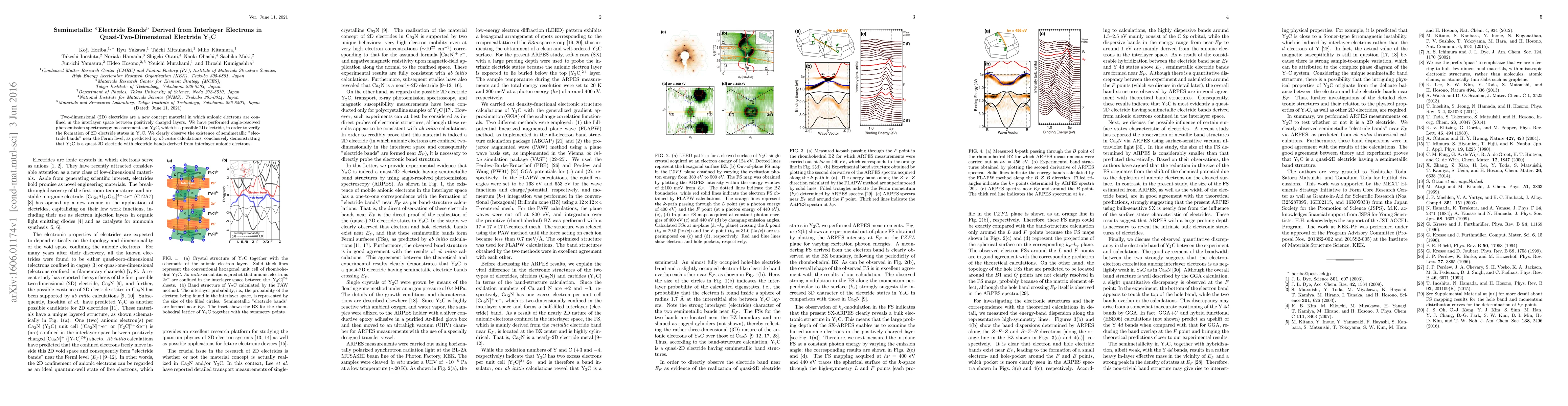 This research verifies the existence of semimetallic "electride bands" in the quasi-2D material Y$_2$C using angle-resolved photoemission spectroscopy, confirming it as a 2D electride with interlayer anionic electrons. The findings align with previous ${ab}$ ${initio}$ calculations.