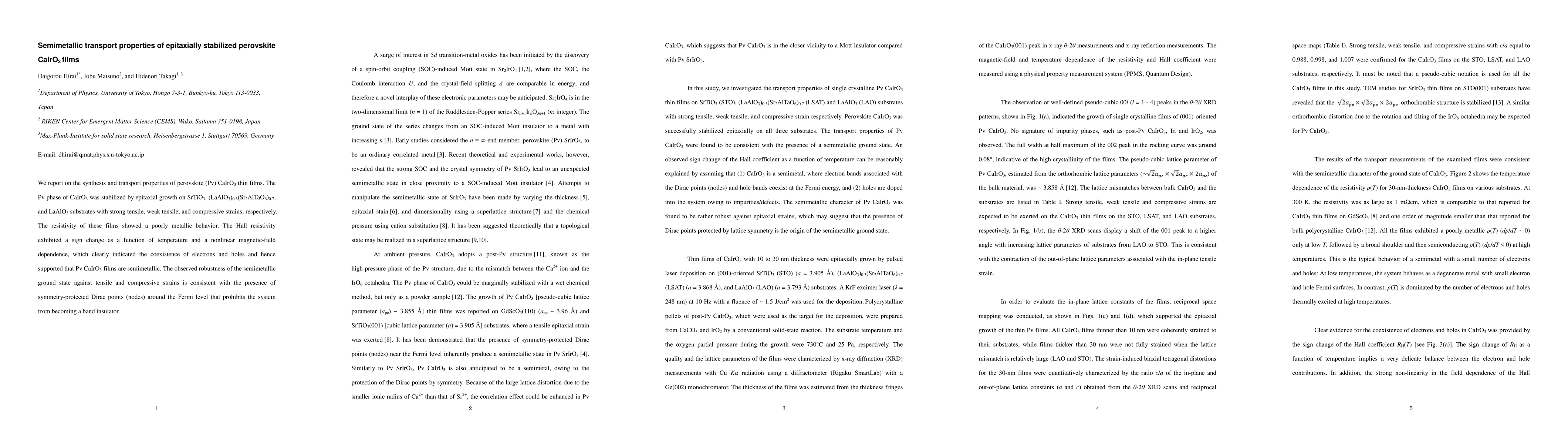 The paper presents a detailed study of the semimetallic transport properties of epitaxially stabilized CaIrO3 thin films, attributing the robust semimetallic ground state to symmetry-protected Dirac points.