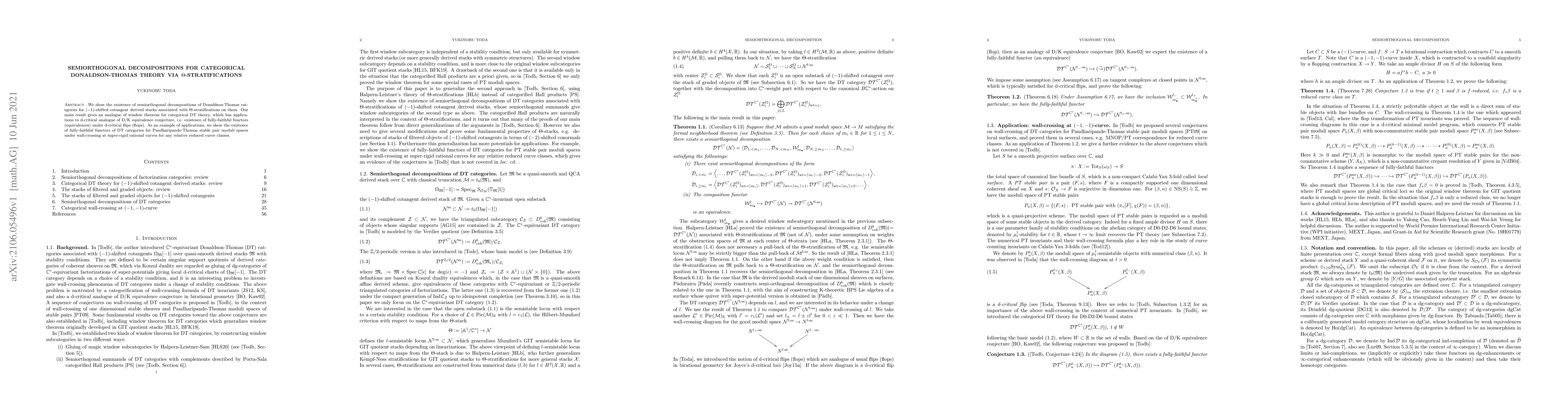 This paper establishes semiorthogonal decompositions for Donaldson-Thomas categories linked to $(-1)$-shifted cotangent derived stacks via $\Theta$-stratifications. It provides an analogue of the window theorem for categorical DT theory, with implications for the d-critical analogue of the D/K equivalence conjecture.