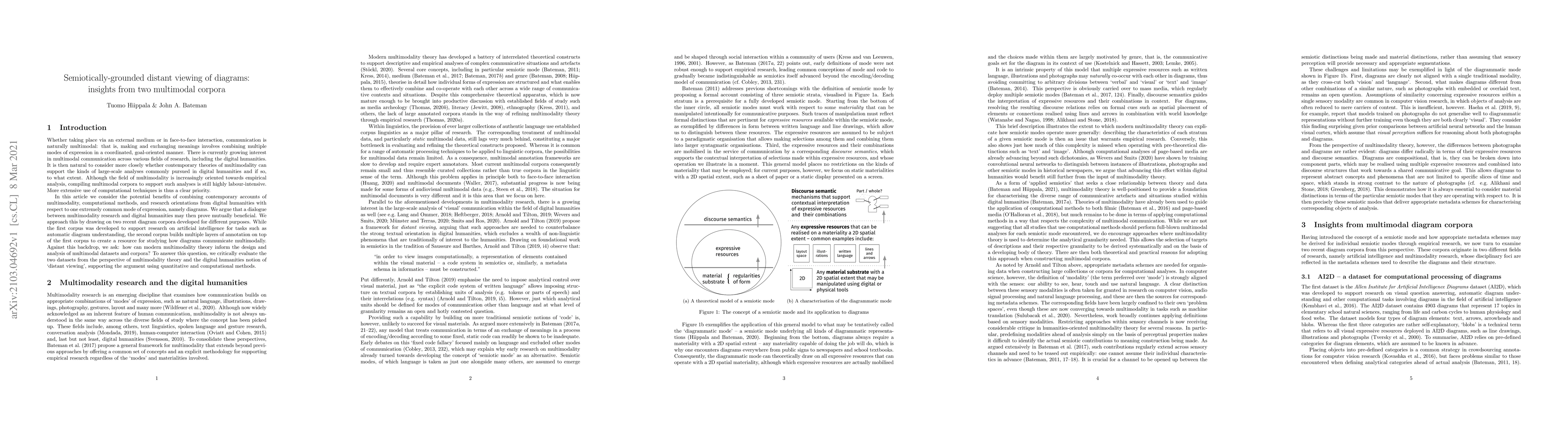 In this article, we bring together theories of multimodal communication and computational methods to study how primary school science diagrams combine multiple expressive resources. We position our work within the field of digital humanities, and show how annotations informed by multimodality research, which target expressive resources and discourse structure, allow imposing structure on the output of computational methods. We illustrate our approach by analysing two multimodal diagram corpora: the first corpus is intended to support research on automatic diagram processing, whereas the second is oriented towards studying diagrams as a mode of communication. Our results show that multimodally-informed annotations can bring out structural patterns in the diagrams, which also extend across diagrams that deal with different topics.