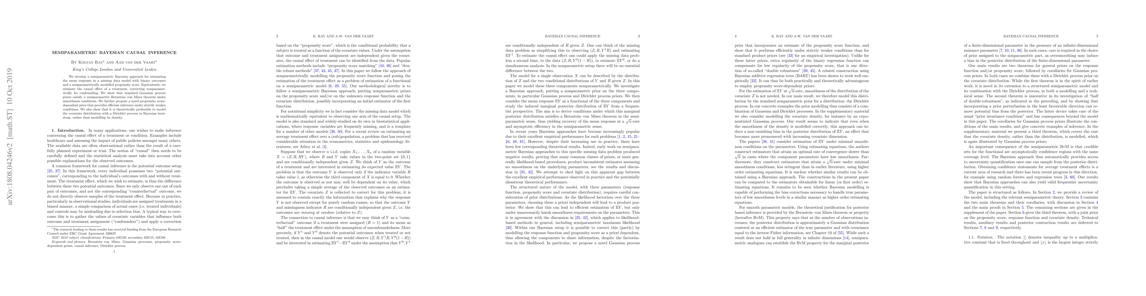 We develop a semiparametric Bayesian approach for estimating the mean response in a missing data model with binary outcomes and a nonparametrically modelled propensity score. Equivalently we estimate the causal effect of a treatment, correcting nonparametrically for confounding. We show that standard Gaussian process priors satisfy a semiparametric Bernstein-von Mises theorem under smoothness conditions. We further propose a novel propensity score-dependent prior that provides efficient inference under strictly weaker conditions. We also show that it is theoretically preferable to model the covariate distribution with a Dirichlet process or Bayesian bootstrap, rather than modelling the covariate density using a Gaussian process prior.