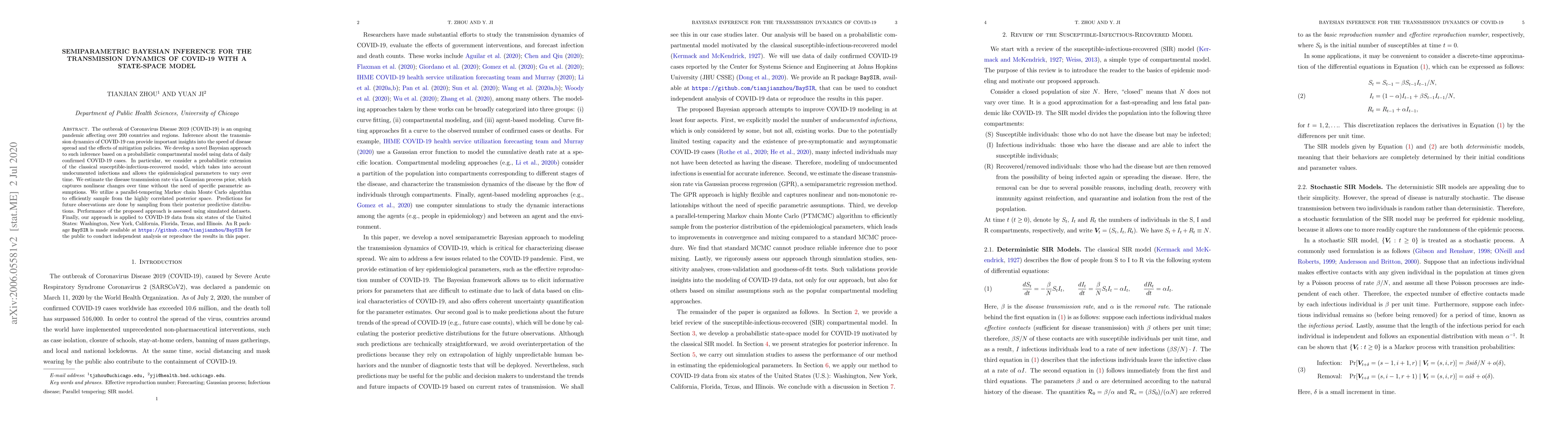 This paper develops a semiparametric Bayesian inference method for modeling COVID-19 transmission dynamics using a state-space model that accounts for undocumented infections and time-varying parameters. The approach estimates transmission rates via a Gaussian process prior and employs a parallel-tempering Markov chain Monte Carlo algorithm for efficient posterior sampling.