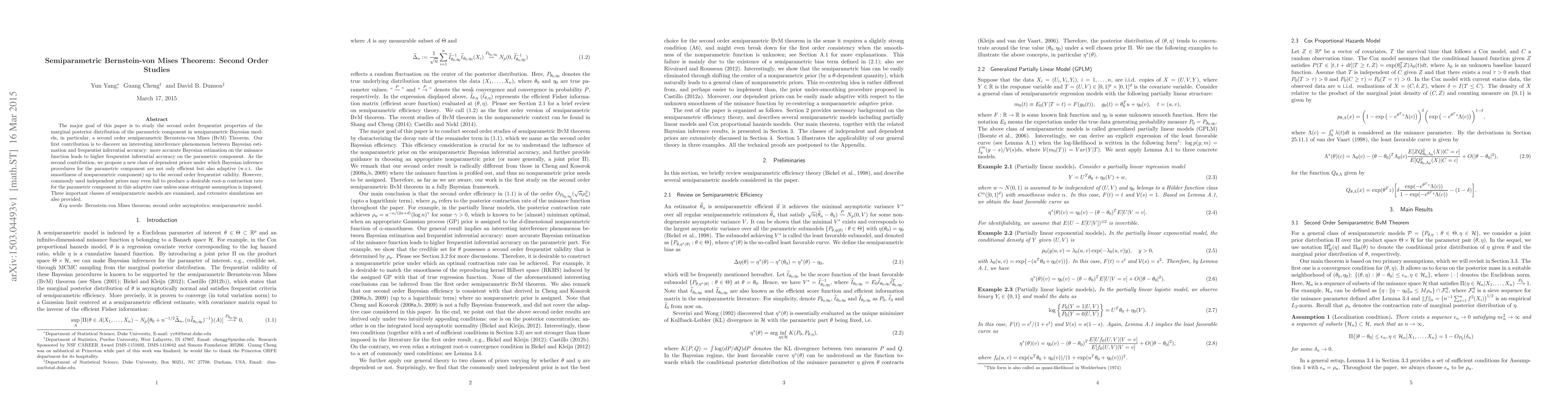 This paper investigates the second-order frequentist properties of the marginal posterior distribution in semiparametric Bayesian models, focusing on a new semiparametric Bernstein-von Mises Theorem. It reveals an interference phenomenon where more accurate Bayesian estimation enhances frequentist inferential accuracy, and proposes a new class of dependent priors that ensure efficient and adaptive Bayesian inference up to second-order validity.