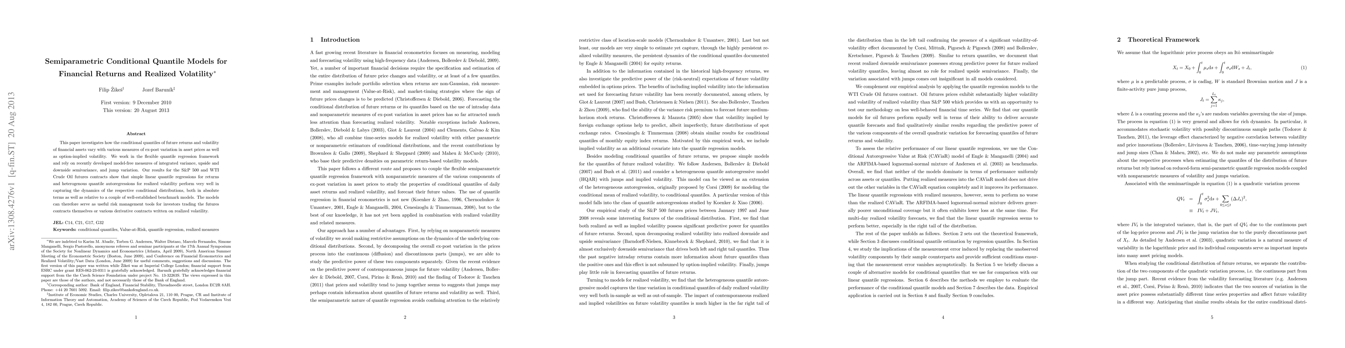 This paper develops semiparametric conditional quantile models for financial returns and realized volatility, showing that simple linear quantile regressions and heterogenous quantile autoregressions effectively capture the dynamics of these distributions. The models serve as useful risk management tools for investors.