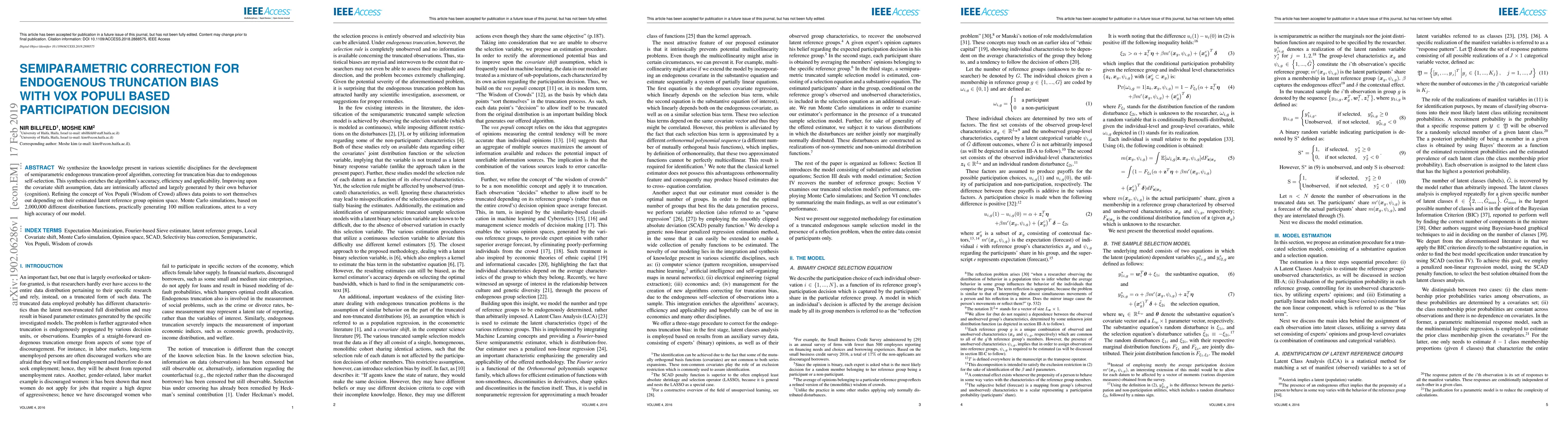This paper develops a semiparametric algorithm to correct for endogenous truncation bias, improving upon traditional covariate shift assumptions. By leveraging the concept of Vox Populi, the algorithm refines data sorting based on latent group opinions, validated through extensive Monte Carlo simulations.