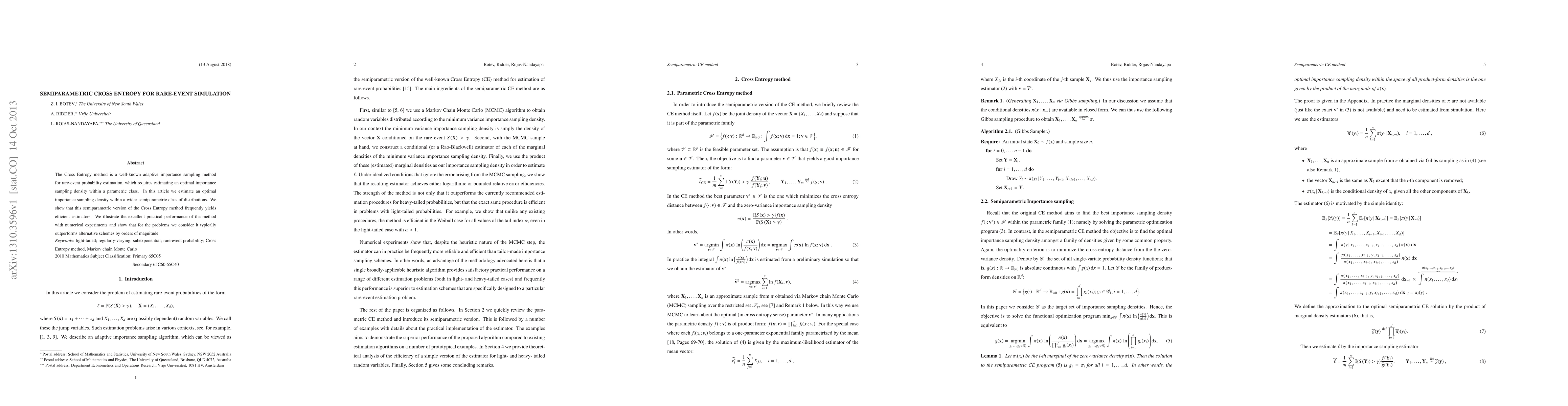 This paper proposes a semiparametric version of the Cross Entropy method for rare-event simulation, which estimates an optimal importance sampling density within a broader semiparametric class. Numerical experiments demonstrate that this method often outperforms traditional parametric methods by orders of magnitude.