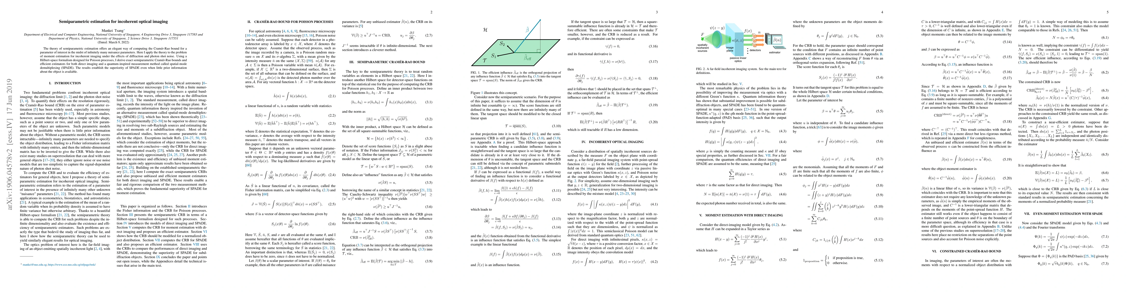 This paper applies semiparametric estimation theory to derive exact Cramér-Rao bounds and efficient estimators for incoherent optical imaging, demonstrating the superiority of spatial-mode demultiplexing (SPADE) over direct imaging, even with minimal prior information.