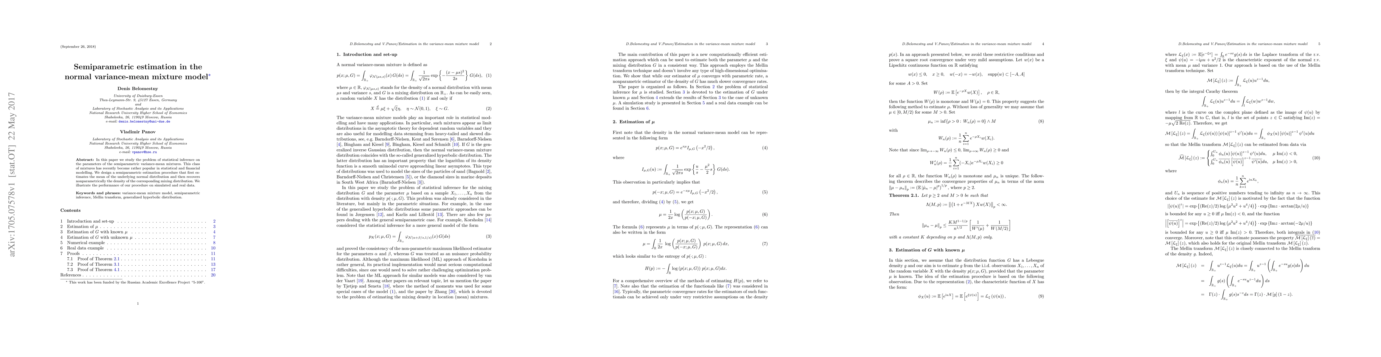 This paper develops a semiparametric estimation method for variance-mean mixture models, focusing on estimating the mean of a normal distribution and nonparametrically recovering the mixing distribution's density. The proposed procedure is evaluated through simulations and real data applications.
