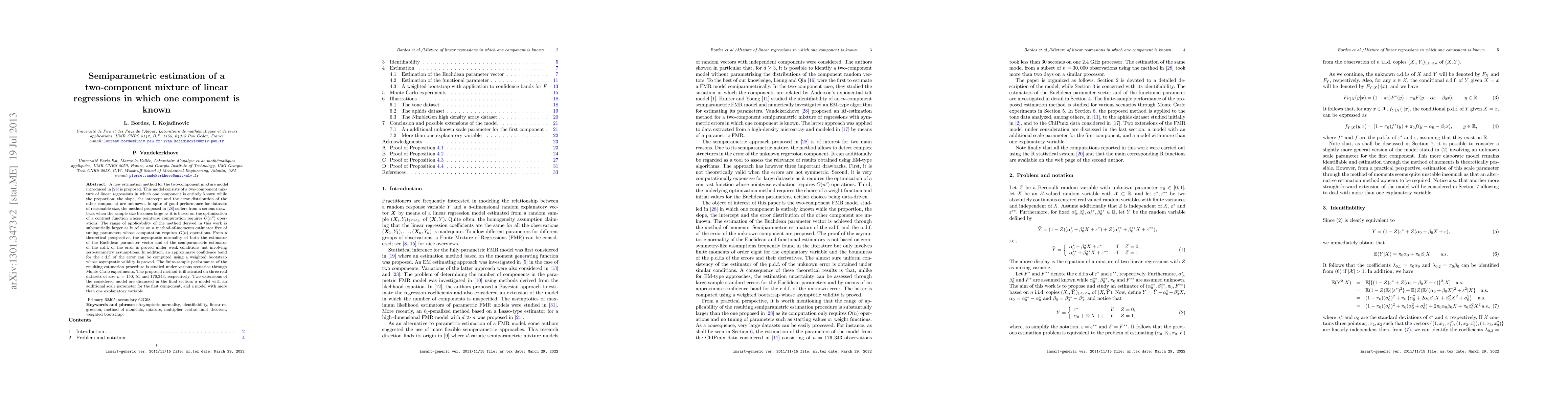This paper proposes a new semiparametric estimation method for a two-component mixture of linear regressions where one component is known. The new method, based on a method-of-moments estimator, is computationally efficient and applicable to larger datasets compared to the previous method, which relies on optimization and is limited by O(n^2) operations.