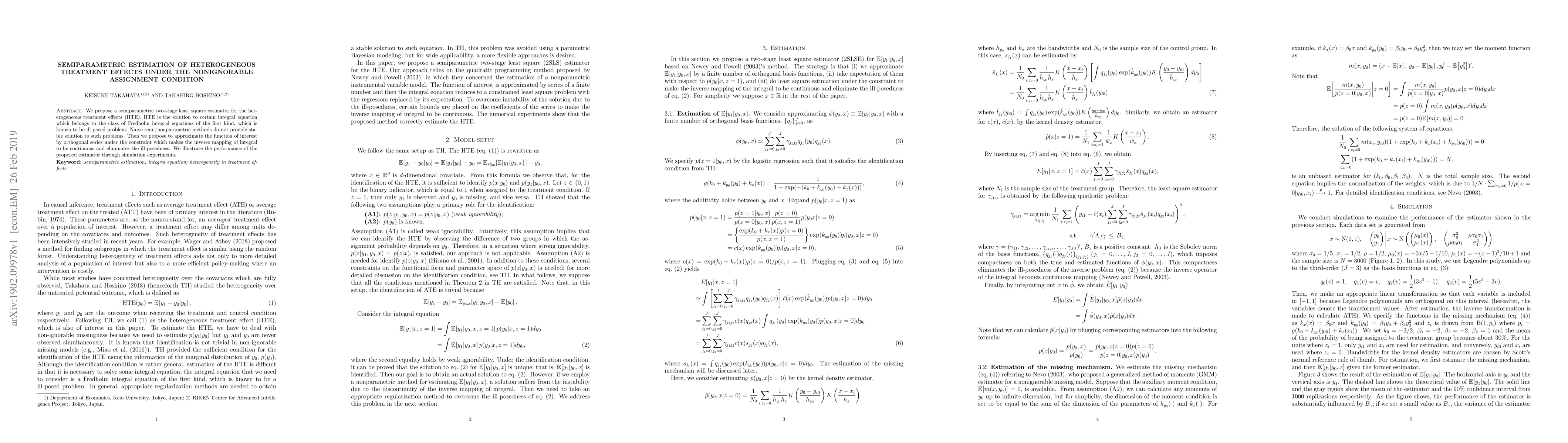We propose a semiparametric two-stage least square estimator for the heterogeneous treatment effects (HTE). HTE is the solution to certain integral equation which belongs to the class of Fredholm integral equations of the first kind, which is known to be ill-posed problem. Naive semi/nonparametric methods do not provide stable solution to such problems. Then we propose to approximate the function of interest by orthogonal series under the constraint which makes the inverse mapping of integral to be continuous and eliminates the ill-posedness. We illustrate the performance of the proposed estimator through simulation experiments.