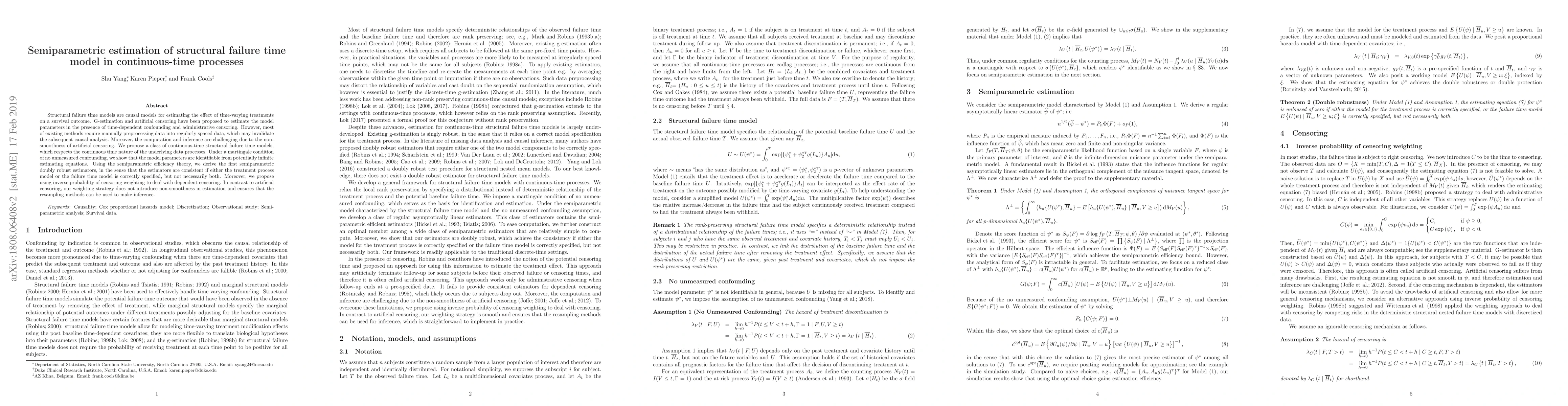 This paper proposes a class of continuous-time structural failure time models for estimating the effects of time-varying treatments on survival outcomes, introducing semiparametric doubly robust estimators that are consistent if either the treatment or failure time model is correctly specified. It also employs inverse probability of censoring weighting to handle dependent censoring without introducing non-smoothness.