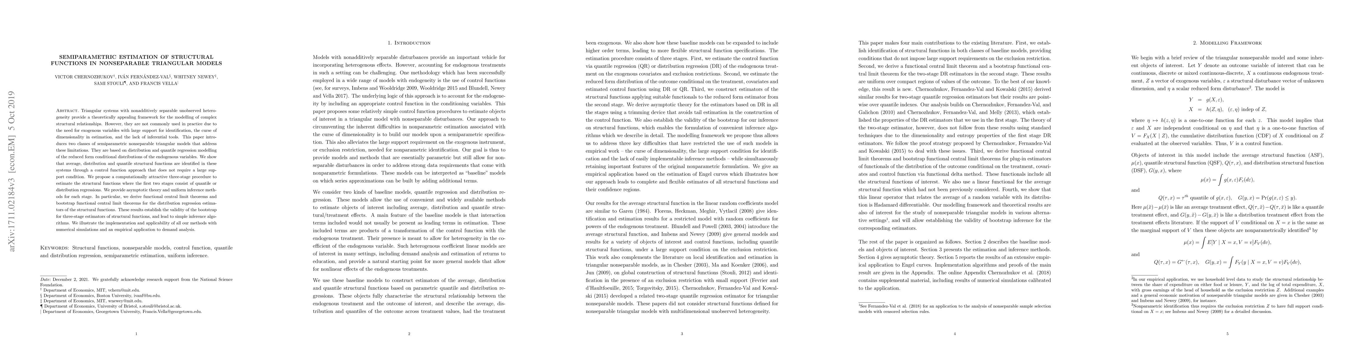 This paper introduces semiparametric nonseparable triangular models for complex structural relationships, overcoming identification and estimation challenges through a control function approach. It proposes a three-stage estimation procedure based on quantile or distribution regression, providing asymptotic theory and uniform inference methods, and demonstrates its application via simulations and an empirical demand analysis.