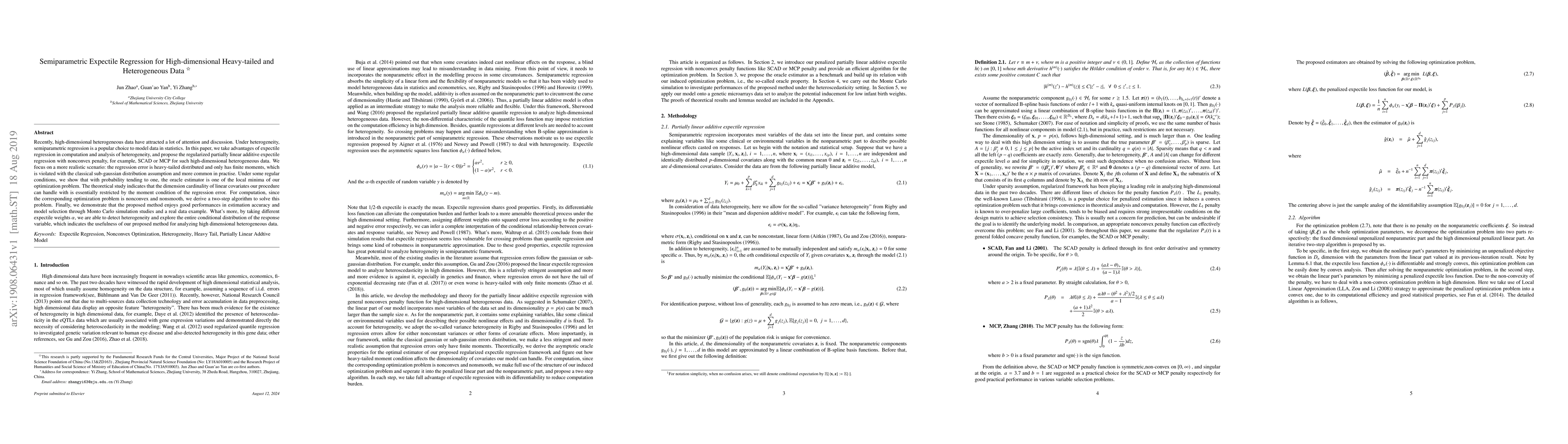 This paper proposes a semiparametric expectile regression method for high-dimensional, heavy-tailed, and heterogeneous data, using nonconvex penalties like SCAD or MCP. It demonstrates the method's ability to handle data with heavy-tailed errors and provides a two-step algorithm to solve the nonconvex optimization problem, showing good performance in simulations and real data applications.