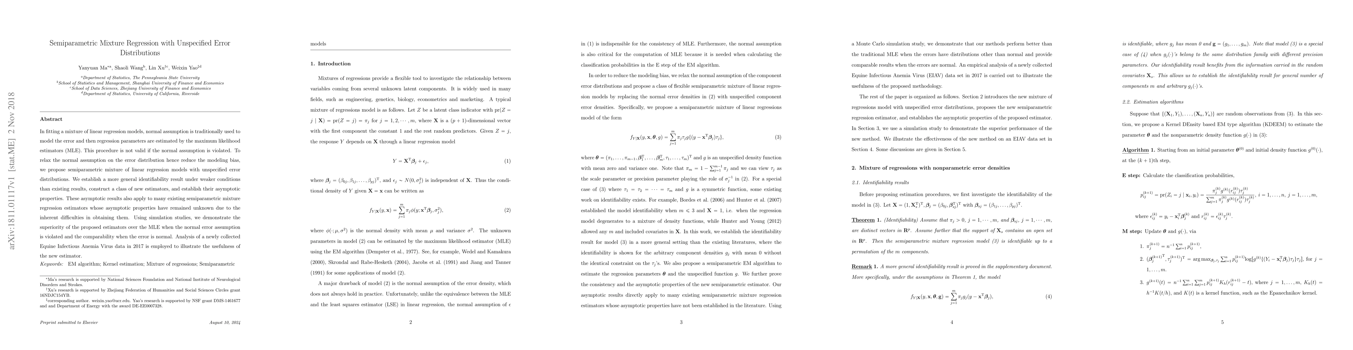 This paper proposes semiparametric mixture regression models that do not rely on the normal error assumption, introducing new estimators with established asymptotic properties. The proposed method demonstrates superior performance over traditional maximum likelihood estimators when the normal assumption is violated, as shown through simulations and an application to Equine Infectious Anemia Virus data.