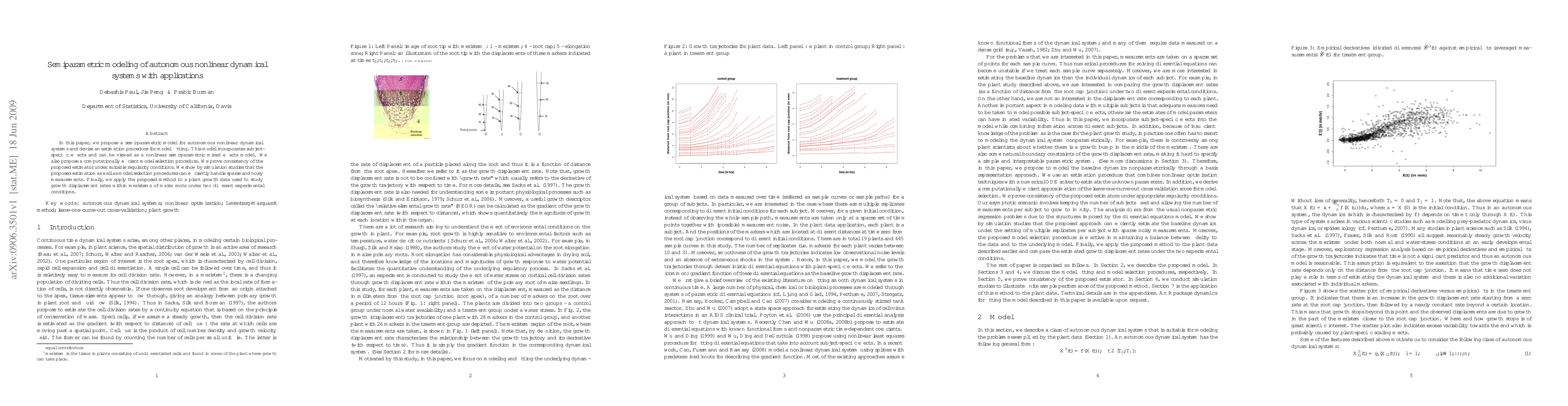 This paper proposes a semi-parametric model for autonomous nonlinear dynamical systems, including a fitting procedure and efficient model selection. Simulation studies demonstrate its effectiveness in handling sparse and noisy data, and it is applied to maize root growth data to study growth displacement rates.