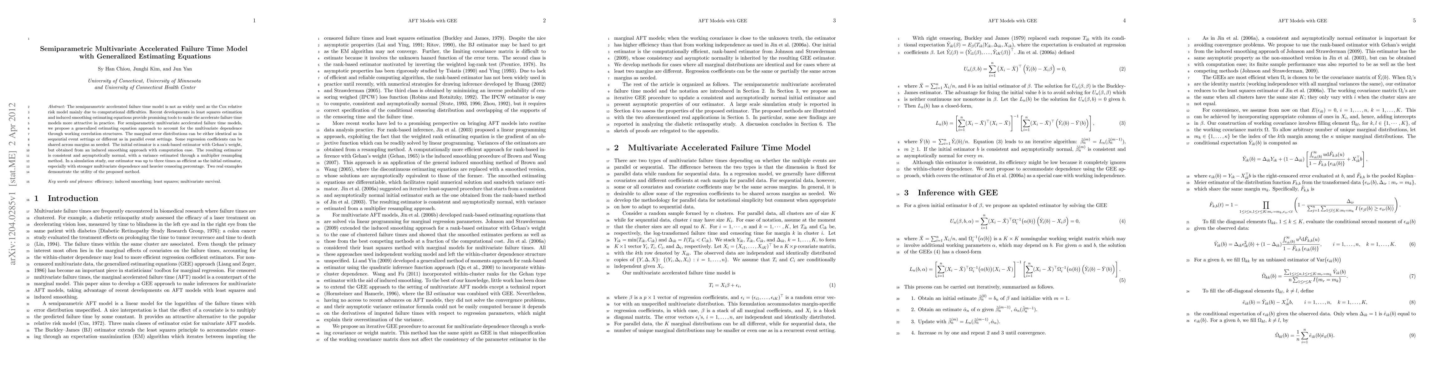 This paper proposes a generalized estimating equation approach for semiparametric multivariate accelerated failure time models, addressing computational challenges and accounting for multivariate dependence. The method shows improved efficiency and is demonstrated through simulations and real data examples.