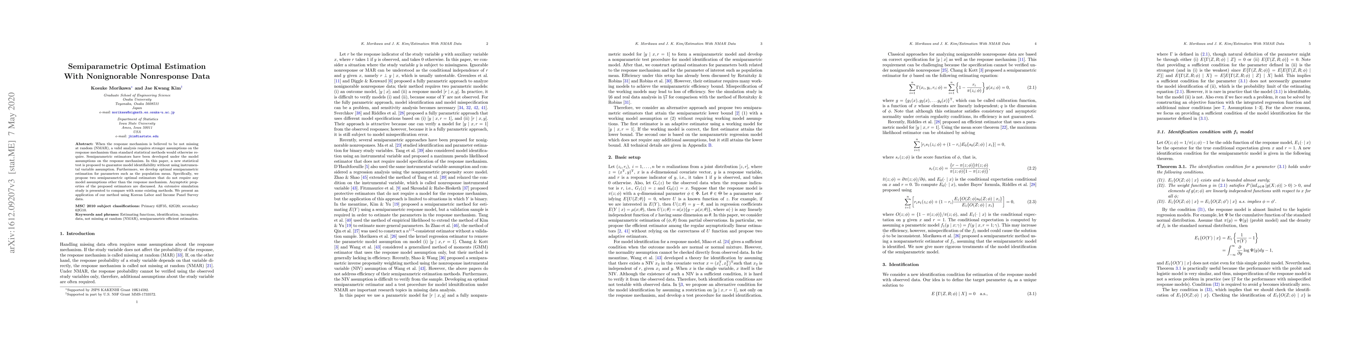 The study introduces a new semiparametric approach for estimating response probabilities with nonignorable missing data, which is robust and efficient.