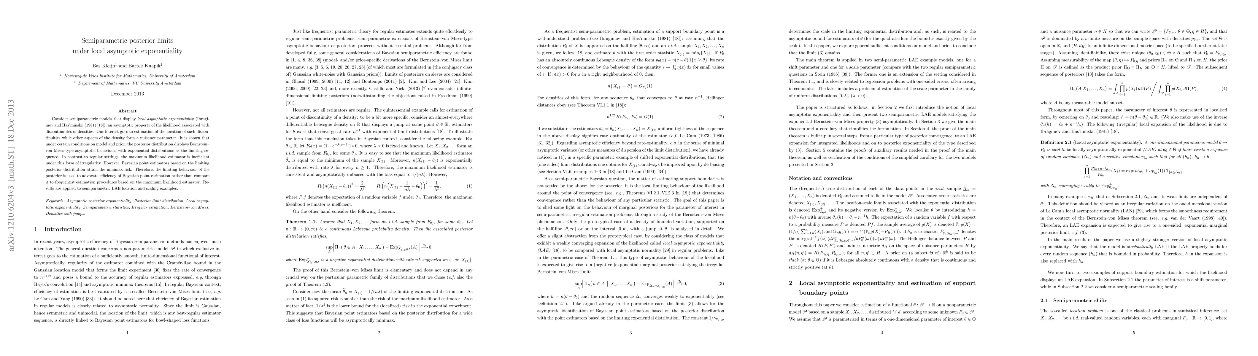 Consider semiparametric models that display local asymptotic exponentiality (Ibragimov and Has'minskii (1981)), an asymptotic property of the likelihood associated with discontinuities of densities. Our interest goes to estimation of the location of such discontinuities while other aspects of the density form a nuisance parameter. It is shown that under certain conditions on model and prior, the posterior distribution displays Bernstein-von Mises-type asymptotic behaviour, with exponential distributions as the limiting sequence. In contrast to regular settings, the maximum likelihood estimator is inefficient under this form of irregularity. However, Bayesian point estimators based on the limiting posterior distribution attain the minimax risk. Therefore, the limiting behaviour of the posterior is used to advocate efficiency of Bayesian point estimation rather than compare it to frequentist estimation procedures based on the maximum likelihood estimator. Results are applied to semiparametric LAE location and scaling examples.