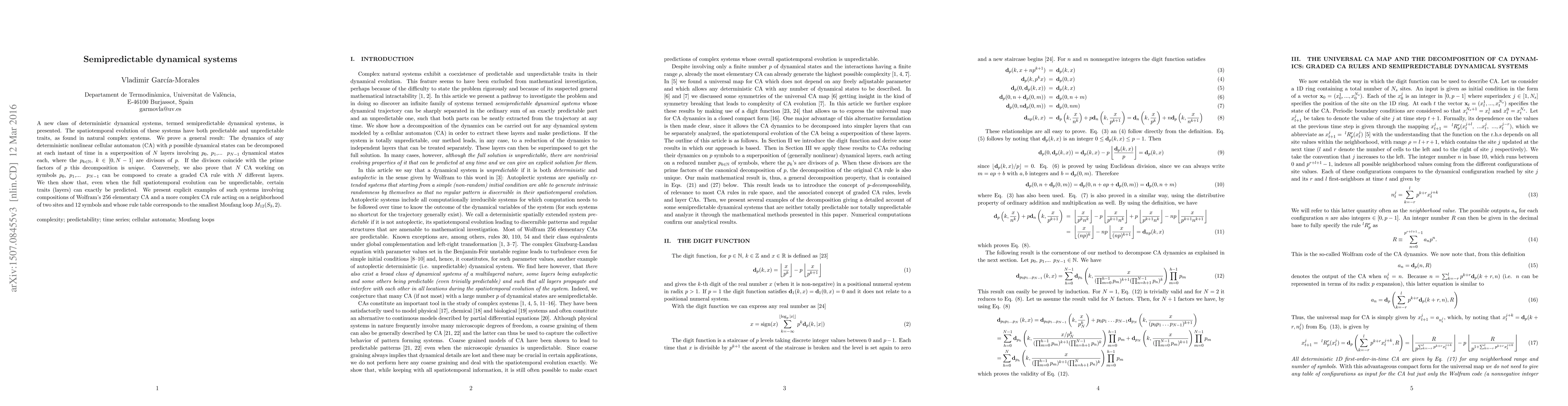 Researchers introduced semipredictable dynamical systems, which combine predictable and unpredictable traits, and showed that certain layers of these systems can be exactly predicted, even in cases where the full evolution is unpredictable.