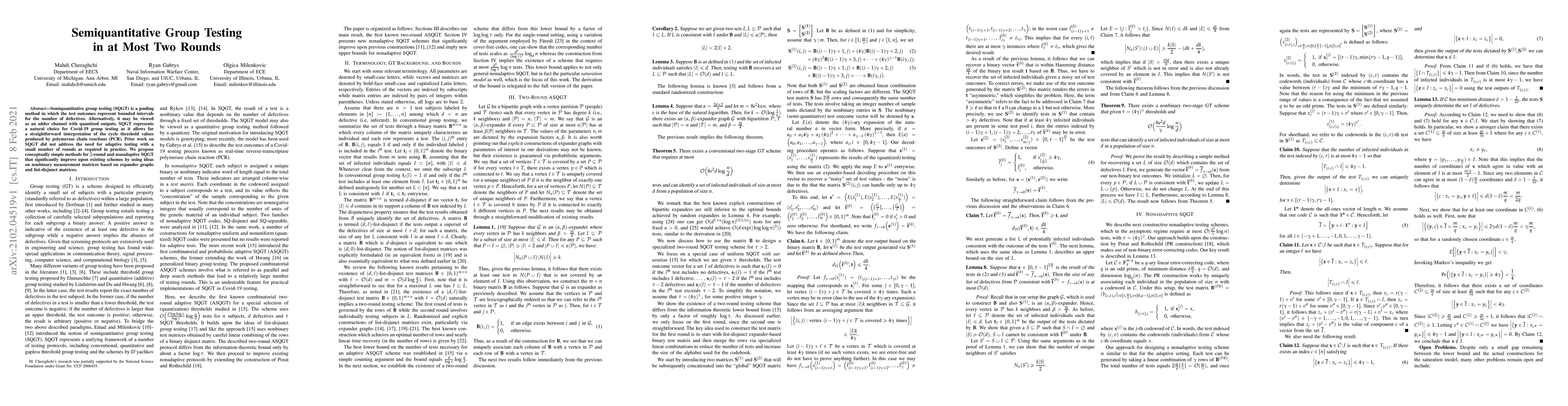 Researchers propose improved methods for semiquantitative group testing, enabling Covid-19 testing in just two rounds and increasing accuracy.
