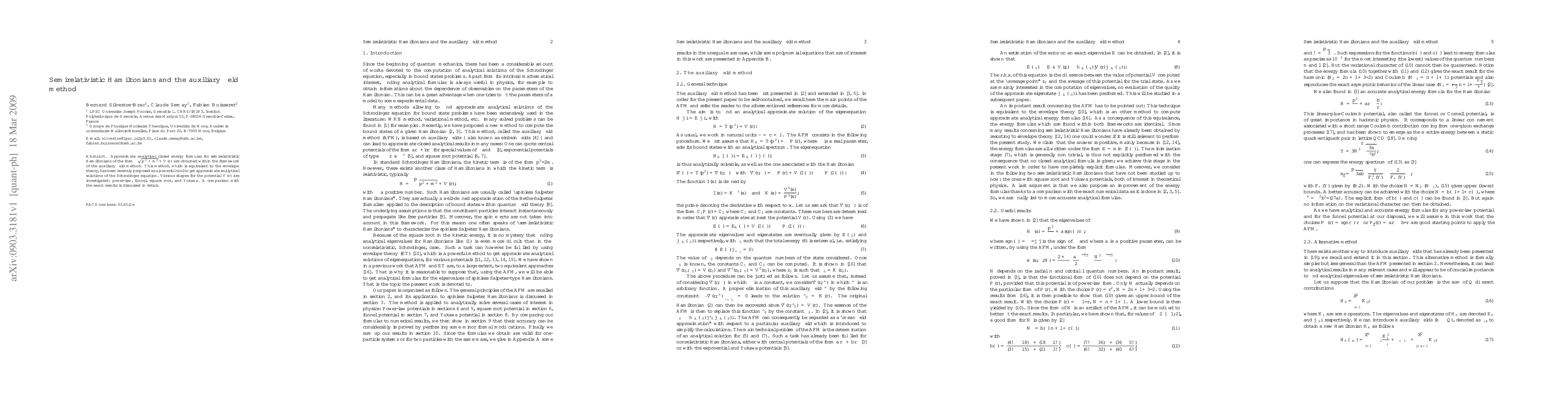 This paper develops approximate analytical solutions for semirelativistic Hamiltonians using the auxiliary field method, comparing results for various potential shapes, and discusses their accuracy against exact solutions.