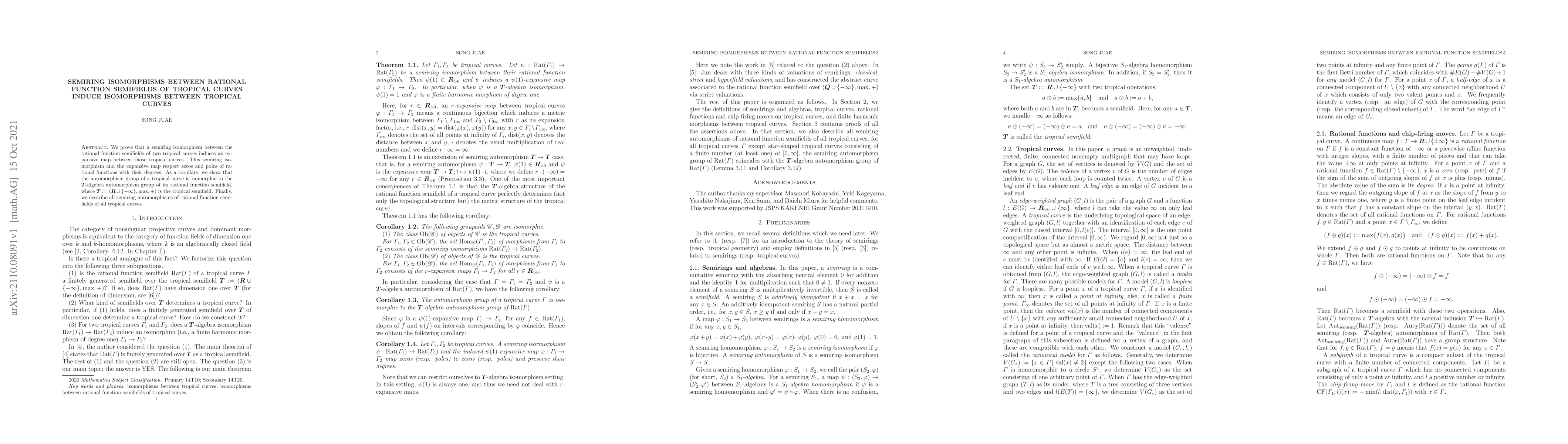 This paper proves that semiring isomorphisms between rational function semifields of tropical curves induce expansive maps between the curves, preserving zeros and poles of rational functions. It concludes by showing that the automorphism group of a tropical curve is isomorphic to the $\boldsymbol{T}$-algebra automorphism group of its rational function semifield.