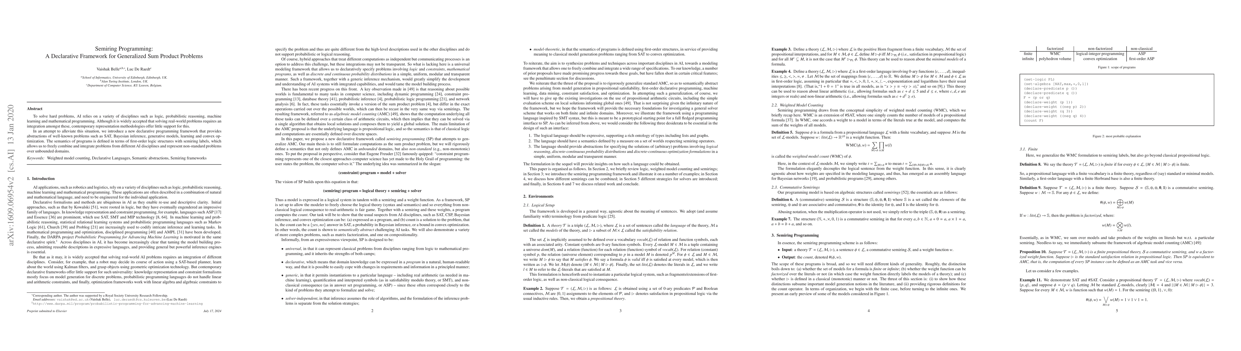 To solve hard problems, AI relies on a variety of disciplines such as logic, probabilistic reasoning, machine learning and mathematical programming. Although it is widely accepted that solving real-world problems requires an integration amongst these, contemporary representation methodologies offer little support for this. In an attempt to alleviate this situation, we introduce a new declarative programming framework that provides abstractions of well-known problems such as SAT, Bayesian inference, generative models, and convex optimization. The semantics of programs is defined in terms of first-order structures with semiring labels, which allows us to freely combine and integrate problems from different AI disciplines.