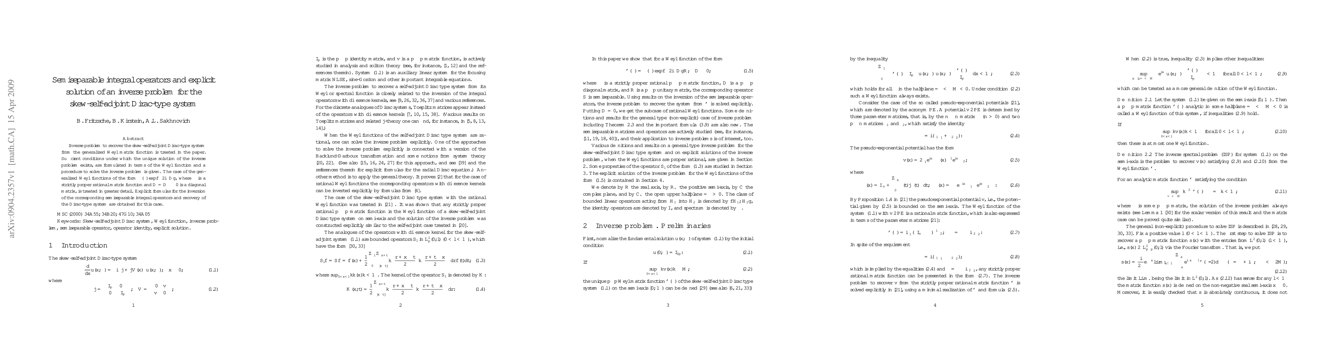 This paper addresses the inverse problem of recovering a skew-self-adjoint Dirac-type system from a generalized Weyl matrix function. It provides sufficient conditions for the existence of a unique solution and offers explicit formulas for inverting semiseparable integral operators in the case of specific generalized Weyl functions.