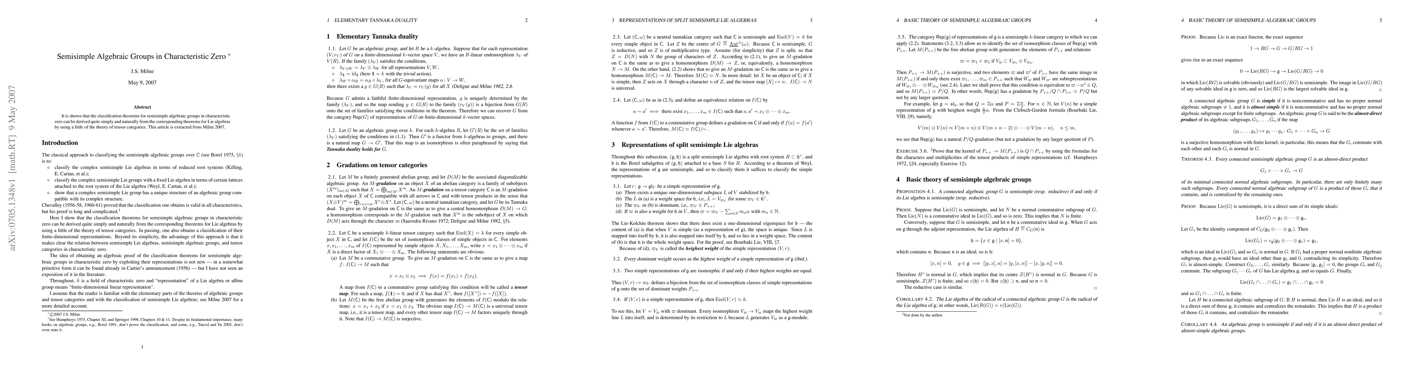 Researchers simplified the classification of semisimple algebraic groups in characteristic zero using tensor category theory, leveraging existing Lie algebra classification theorems.