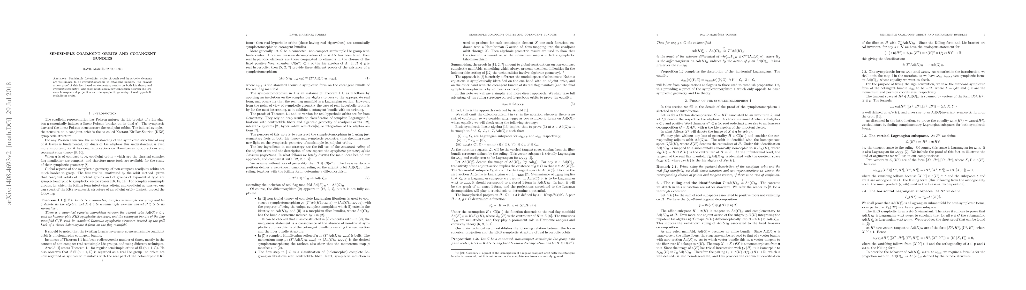 This research contributes to understanding the symplectic geometry of semisimple Lie groups and their coadjoint orbits, which has applications in areas like harmonic analysis and convexity theory.