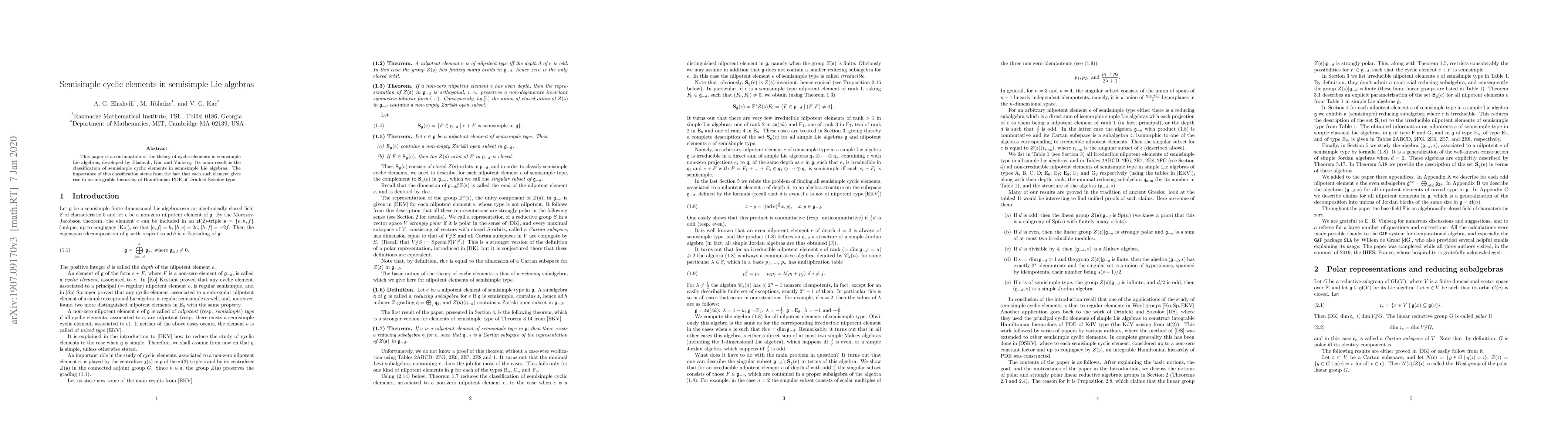 This paper is a continuation of the theory of cyclic elements in semisimple Lie algebras, developed by Elashvili, Kac and Vinberg. Its main result is the classification of semisimple cyclic elements in semisimple Lie algebras. The importance of this classification stems from the fact that each such element gives rise to an integrable hierarchy of Hamiltonian PDE of Drinfeld-Sokolov type.