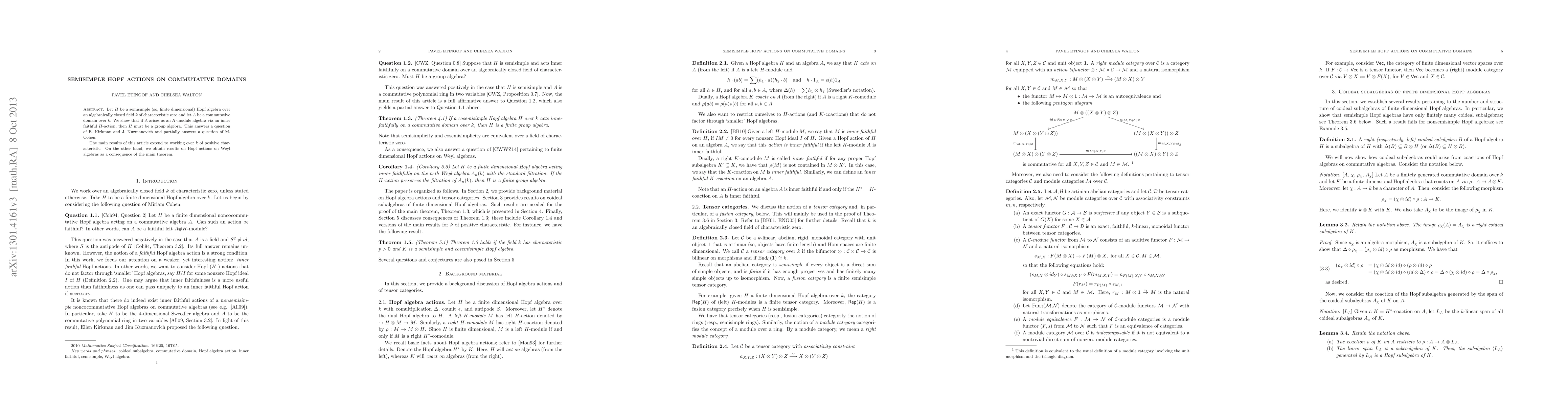 A research paper proves that if a commutative domain over an algebraically closed field is acted upon by a semisimple Hopf algebra in a faithful way, the Hopf algebra must be a group algebra.