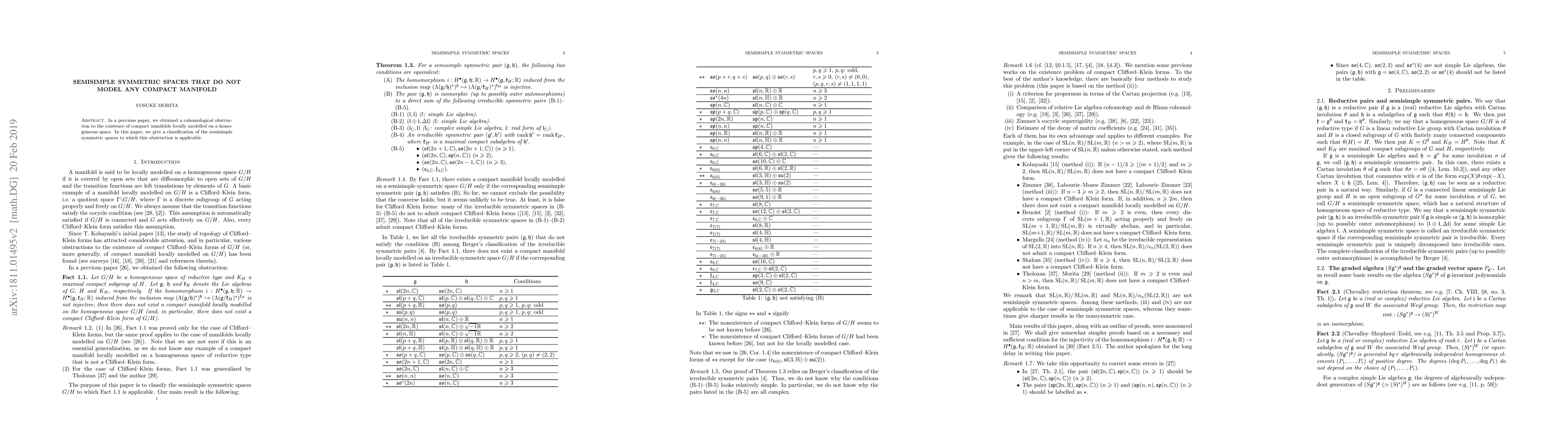 This paper classifies semisimple symmetric spaces that cannot model any compact manifold due to a cohomological obstruction previously identified, extending the understanding of local geometric structures on manifolds.