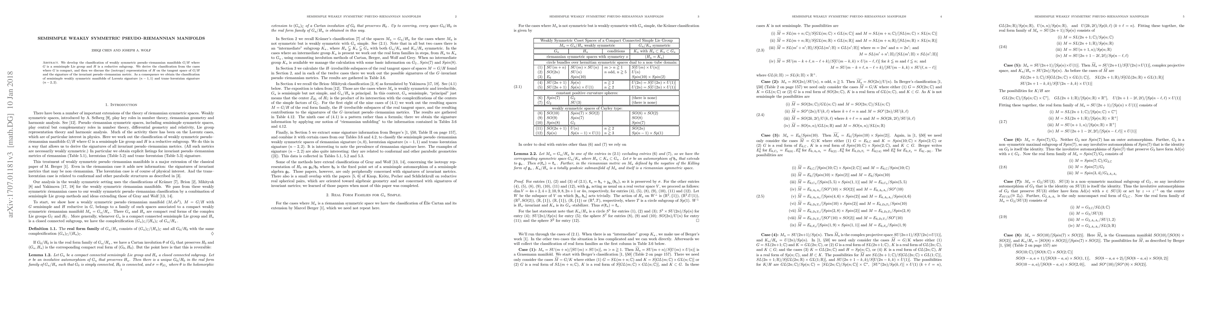 This paper classifies semisimple weakly symmetric pseudo-Riemannian manifolds $G/H$ where $G$ is a semisimple Lie group and $H$ is a reductive subgroup. The classification is derived from compact cases and includes discussion on the representation of $H$ on the tangent space and the signature of the invariant pseudo-Riemannian metric.