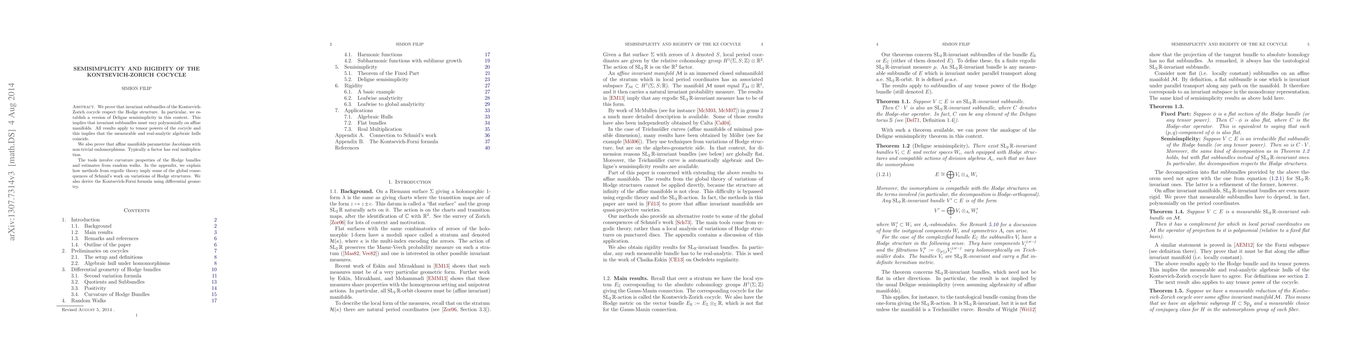 This paper establishes the semisimplicity and rigidity of the Kontsevich-Zorich cocycle, showing that invariant subbundles respect the Hodge structure and vary polynomially on affine manifolds. The study also proves that affine manifolds parametrize Jacobians with non-trivial endomorphisms, often involving real multiplication.