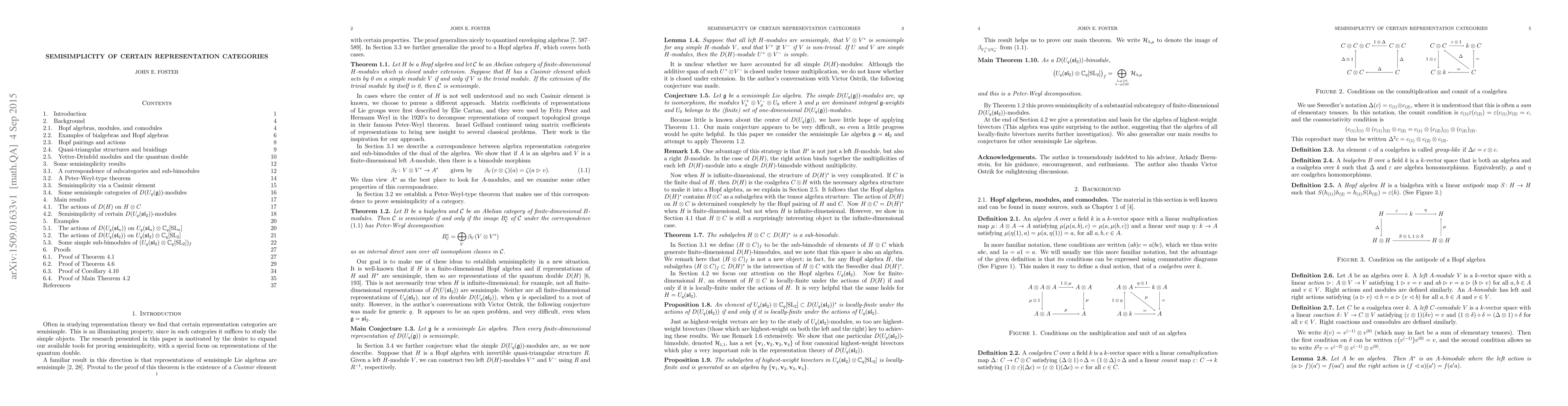 This paper establishes a link between module subcategories and sub-bimodules, proving semisimplicity for specific representation categories if a Peter-Weyl decomposition exists. It applies this method to demonstrate the semisimplicity of finite-dimensional representations of the quantum double of sl_2 for generic q values.