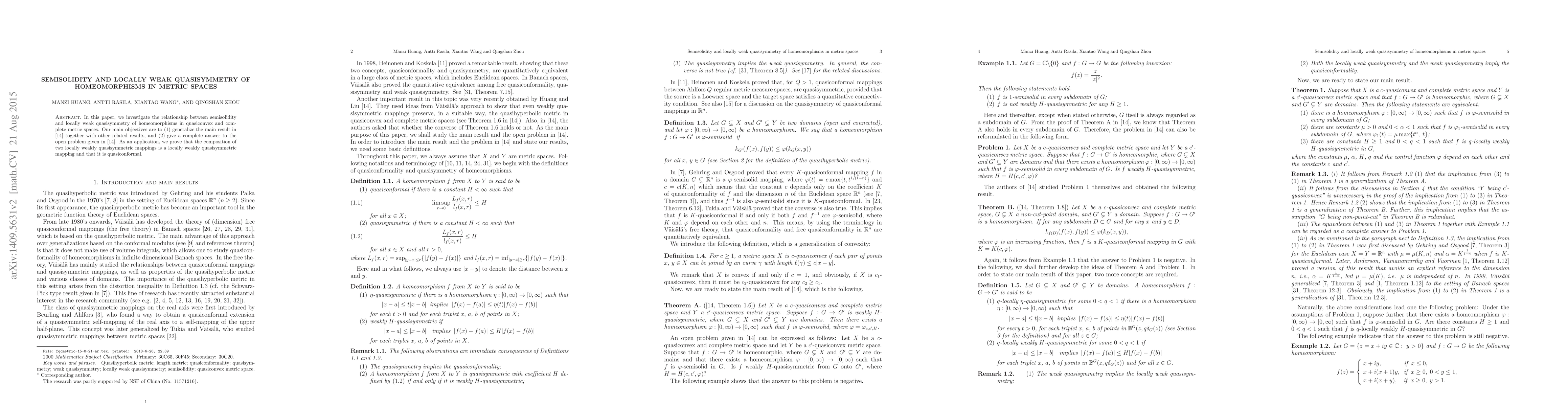 In this paper, we investigate the relationship between semisolidity and locally weak quasisymmetry of homeomorphisms in quasiconvex and complete metric spaces. Our main objectives are to (1) generalize the main result in [X. Huang and J. Liu, Quasihyperbolic metric and quasisymmetric mappings in metric spaces, Trans. Amer. Math. Soc. 367 (2015), 6225-6246] together with other related results, and (2) give a complete answer to the open problem given in [X. Huang and J. Liu, Quasihyperbolic metric and quasisymmetric mappings in metric spaces, Trans. Amer. Math. Soc. 367 (2015), 6225-6246]. As an application, we prove that the composition of two locally weakly quasisymmetric mappings is a locally weakly quasisymmetric mapping and that it is quasiconformal.
