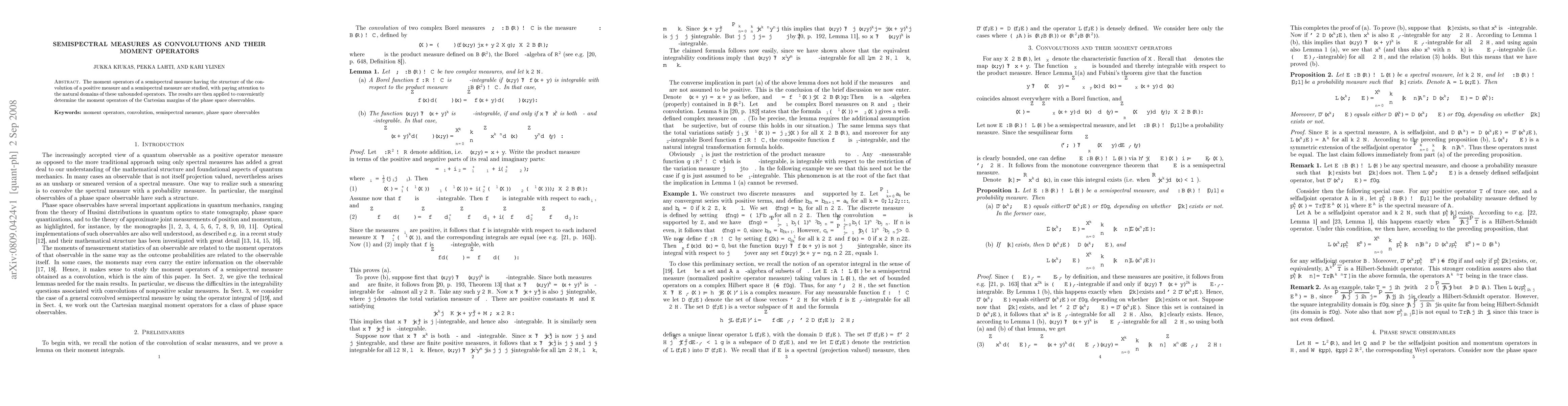 This paper investigates the moment operators of semispectral measures structured as convolutions of a positive measure and a semispectral measure, focusing on their natural domains. The findings are applied to determine the moment operators of Cartesian margins of phase space observables.