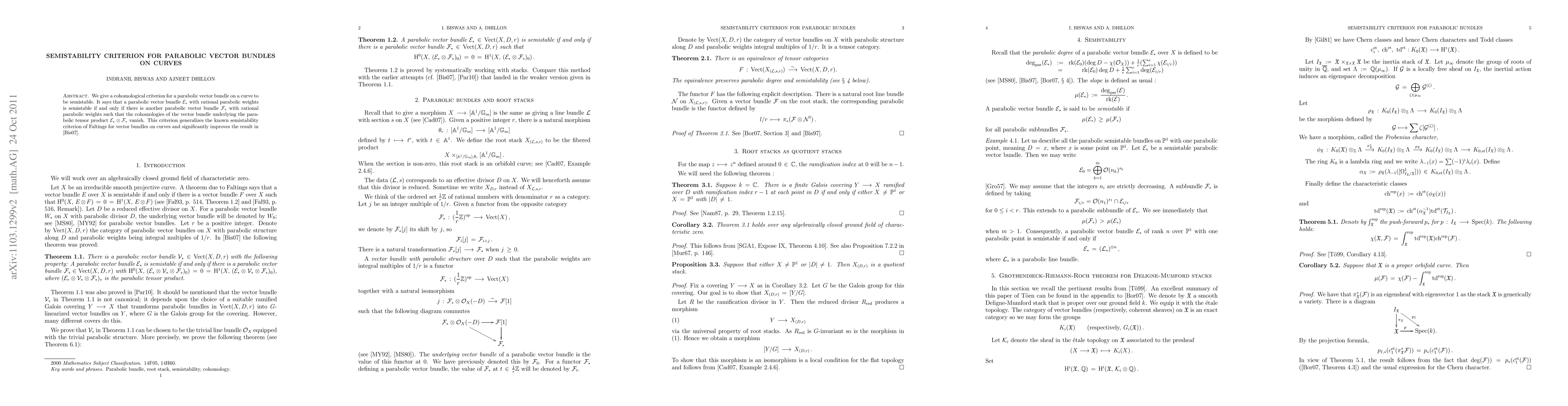 This paper provides a cohomological criterion for determining the semistability of parabolic vector bundles on algebraic curves, generalizing the existing semistability criterion for vector bundles and improving upon prior results. The criterion states that a parabolic vector bundle is semistable if the cohomologies of its parabolic tensor product with another such bundle vanish.