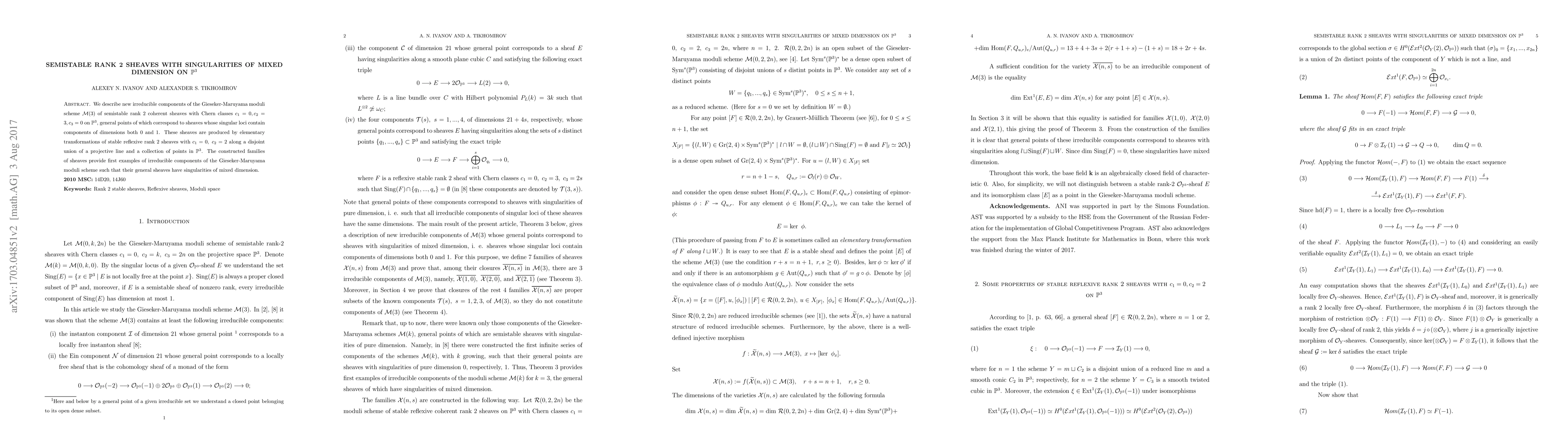 This paper identifies new irreducible components of the Gieseker-Maruyama moduli scheme for semistable rank 2 sheaves on $\mathbb{P}^3$ with $c_1=0, c_2=3, c_3=0$, featuring sheaves with singularities of mixed dimensions. These sheaves arise from transformations of stable reflexive rank 2 sheaves and exemplify moduli components with general members having singularities spanning dimensions 0 and 1.