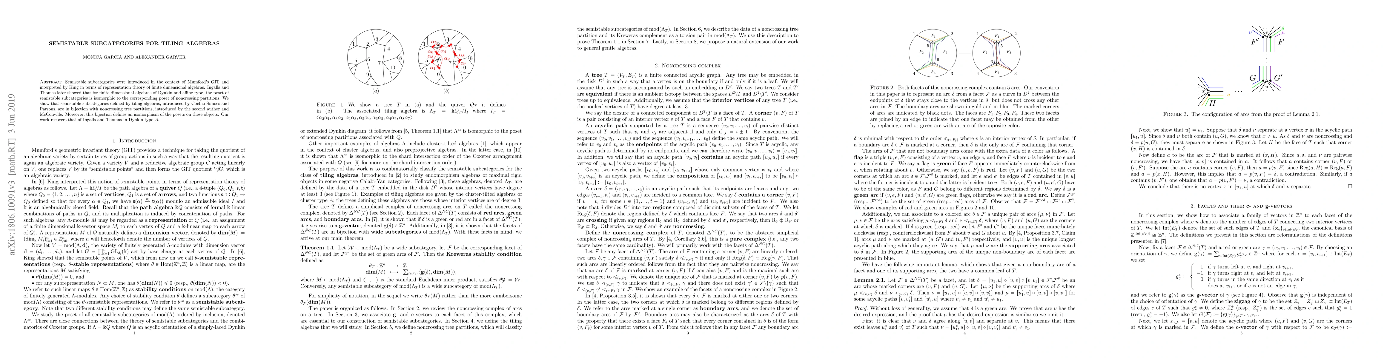 Semistable subcategories were introduced in the context of Mumford's GIT and interpreted by King in terms of representation theory of finite dimensional algebras. Ingalls and Thomas later showed that for finite dimensional algebras of Dynkin and affine type, the poset of semistable subcategories is isomorphic to the corresponding poset of noncrossing partitions. We show that semistable subcategories defined by tiling algebras, introduced by Coelho Sim{\~o}es and Parsons, are in bijection with noncrossing tree partitions, introduced by the second author and McConville. Moreover, this bijection defines an isomorphism of the posets on these objects. Our work recovers that of Ingalls and Thomas in Dynkin type $A$.