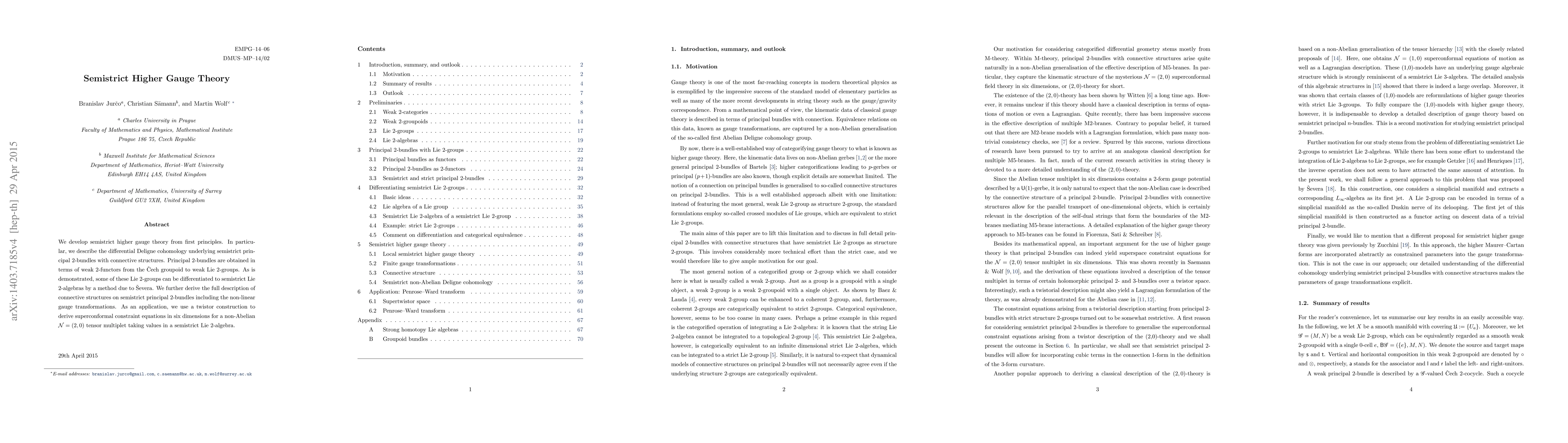 This paper develops semistrict higher gauge theory, focusing on differential Deligne cohomology for semistrict principal 2-bundles, deriving their weak 2-functor representations and connecting them to semistrict Lie 2-algebras. It also applies this framework to derive superconformal constraint equations for a six-dimensional non-Abelian N=(2,0) tensor multiplet.