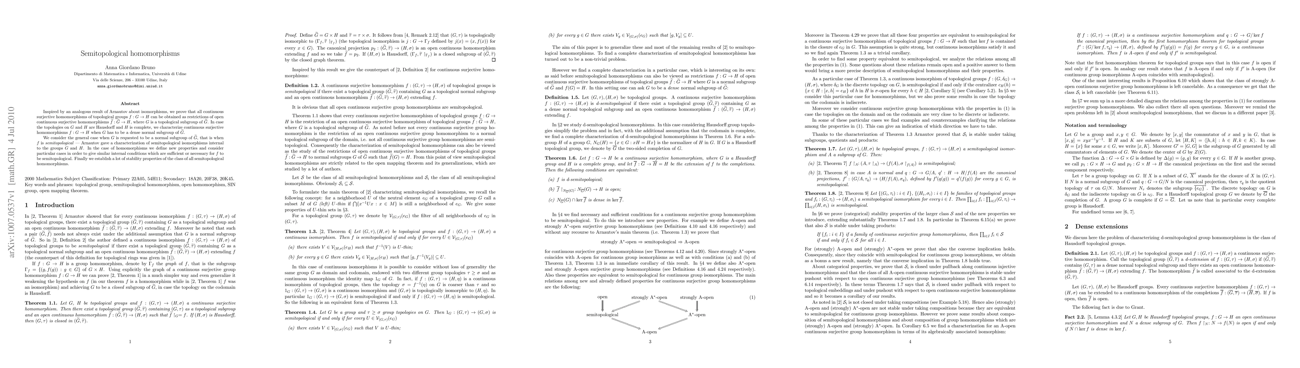 This paper proves that continuous surjective homomorphisms between topological groups can be obtained as restrictions of open continuous surjective homomorphisms. It characterizes these homomorphisms under specific topological conditions and explores semitopological homomorphisms, establishing their stability properties and defining new properties for internal conditions.