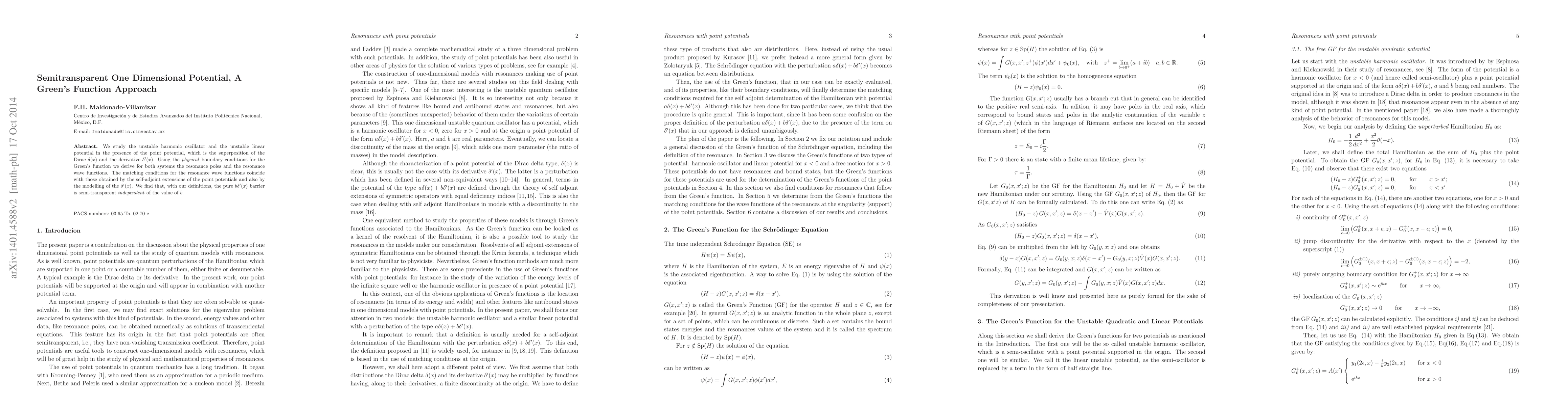 This paper investigates the unstable harmonic oscillator and linear potential with a point potential composed of Dirac delta and its derivative. Using physical boundary conditions for the Green's function, it derives resonance poles and wave functions, finding that the pure $\delta'(x)$ barrier is semitransparent regardless of the parameter $b$.