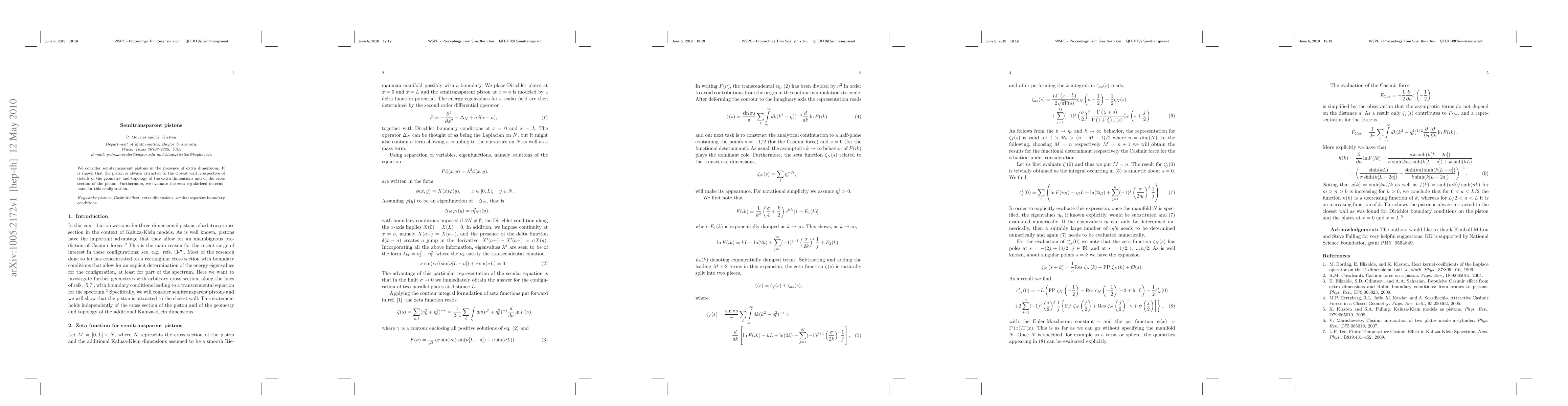 Researchers found that semitransparent pistons are always attracted to the closest wall in extra dimensions, regardless of geometry or topology. This is due to a zeta-regularized determinant calculation.