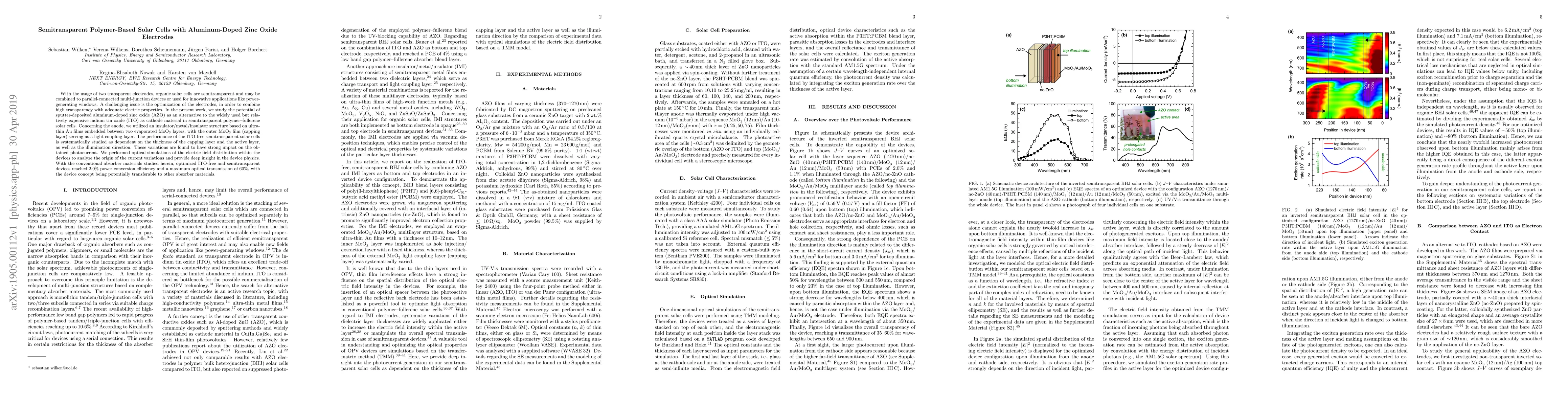 This paper investigates semitransparent polymer-based solar cells using sputter-deposited aluminum-doped zinc oxide (AZO) as an alternative to indium tin oxide (ITO) for the cathode. The study finds that optimized ITO-free devices achieve 2.0% power conversion efficiency and 60% optical transmission, demonstrating the potential for innovative applications like power-generating windows.